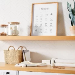 Decorate your home in simple style with this Laundry Care Infographic Framed Sign from Hearth & Hand™ with Magnolia. Designed with a wooden frame in a natural finish, this beige frame features laundry Infographic with instructions and symbols that pops against the off-white background. Place this laundry care framed sign on the shelf with storage baskets, jars and more for decoration.