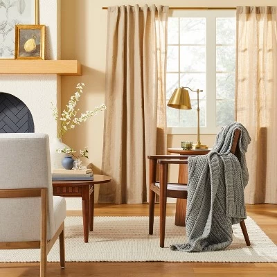 Tone down the light entering your room while adding a bit of privacy with this Fleck Stripe Leno Weave Curtain Panel from Hearth & Hand™ with Magnolia. The window curtain panel in a natural hue coordinates with any interior decor. It’s detailed with woven flack stripes for a chic touch of self texture. The light-filtering fabric lets just the right amount of light in while the classic rod pocket and back tabs allow for quick and easy installation. Just hang using a standard curtain rod and machine wash for easy care.