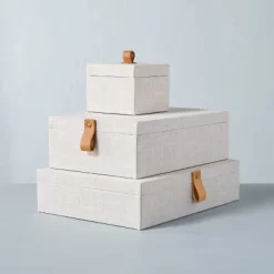 Fabric Storage Box With Faux Leather Accent Cream – Hearth & Handâ„¢ With Magnolia