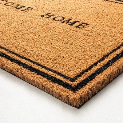 Add a classically inviting feel to your entryway with this ‘Welcome Home’ Coir Doormat from Hearth & Hand™ with Magnolia. Made from all-natural coir fibers, this rectangular medium-pile doormat helps keep your space clean by scraping away dirt and mud right at your doorstep, while the backing keeps it from slipping and sliding. Designed for everyday use, this outdoor doormat features the text “Welcome Home” in black script set against a tan background with black border to usher in guests with a warm welcome.